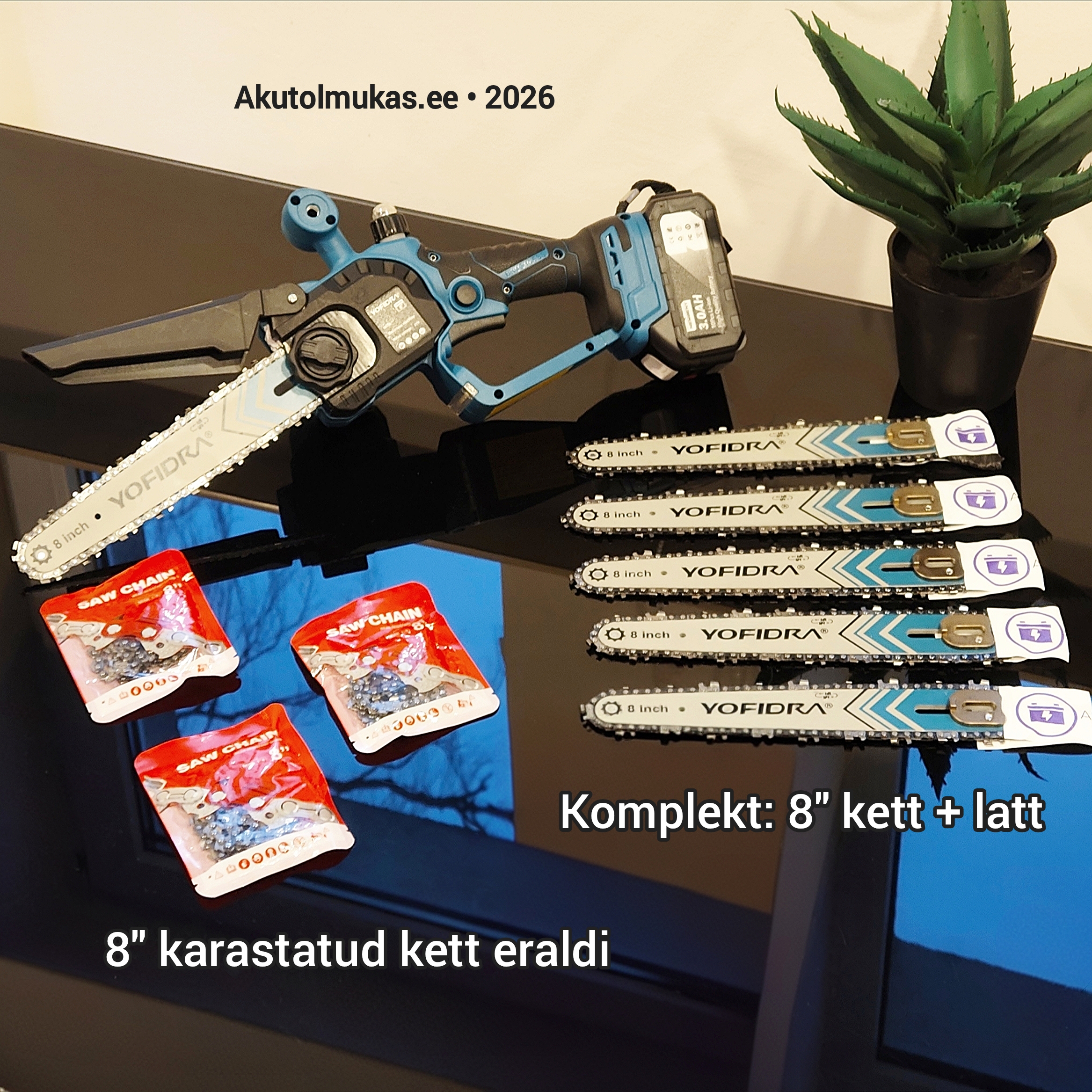 | Komplekti valik ▾ (Kett + latt / Ainult kett) | 8" karastatud kett + 8" latt, 8" karastatud kett |